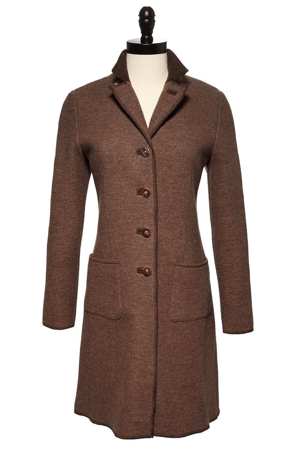 • City Stroller 3/4 length unlined with contrasting collar and deer horn buttons