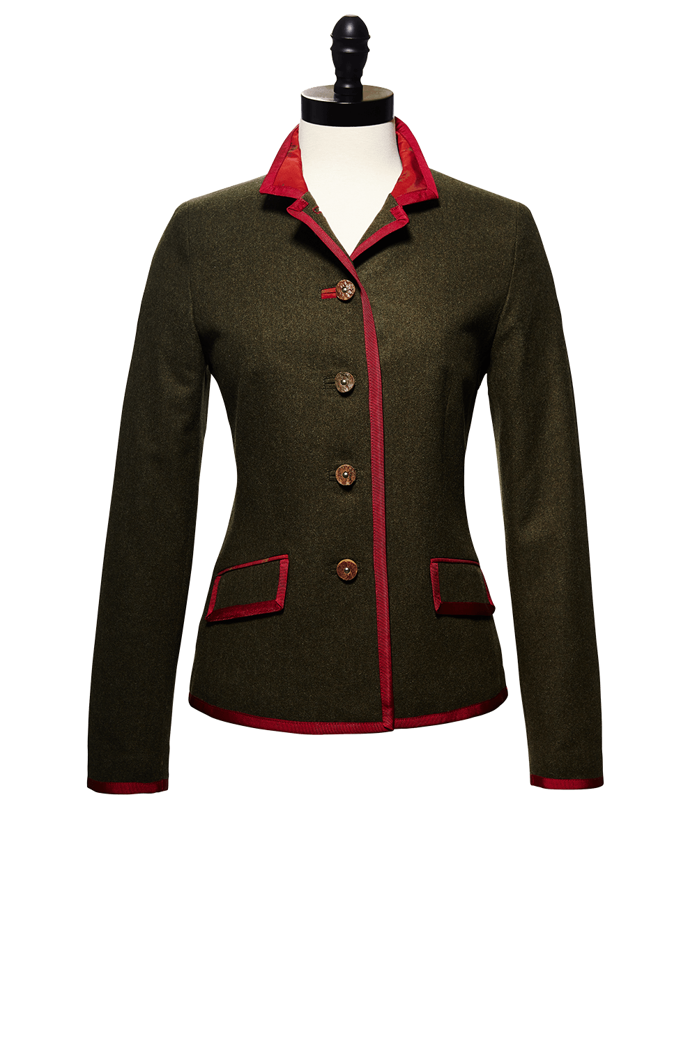 • Alpine Jacket with contrasting ribbon trim, welted button holes with horn buttons