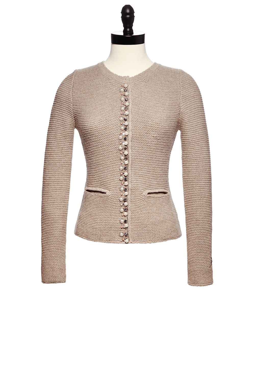 • 4-ply cashmere layering cardigan with hand beaded crystal/pearl closure
