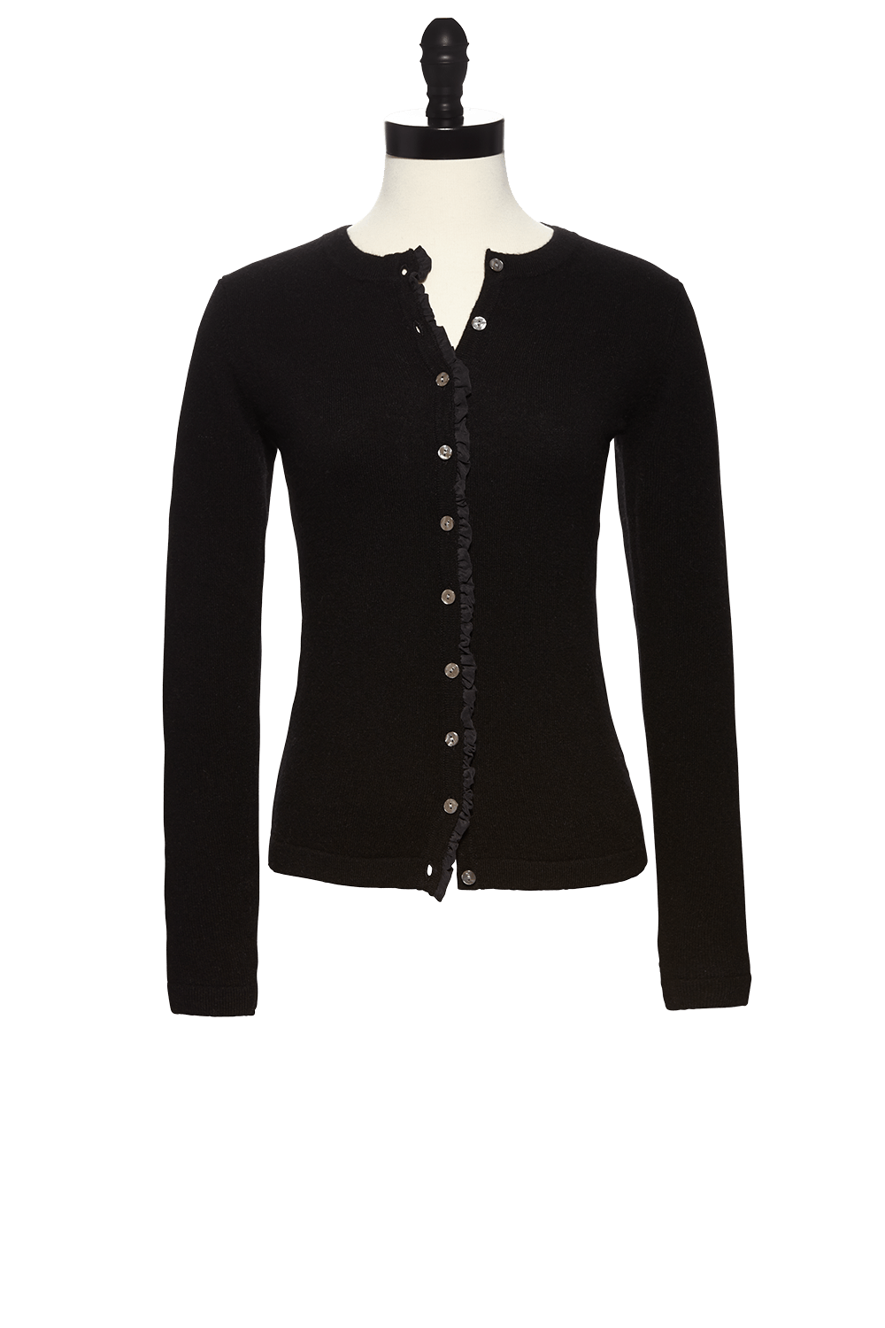• Layering crew neck cardigan with silk ribbon detail on closure
