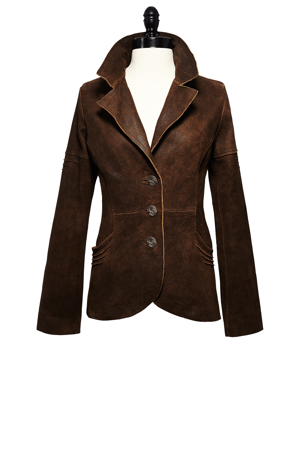 • Walk Wool long jacket unlined fitted at the waist with accent of wool appliquéd belted back pewter buttons