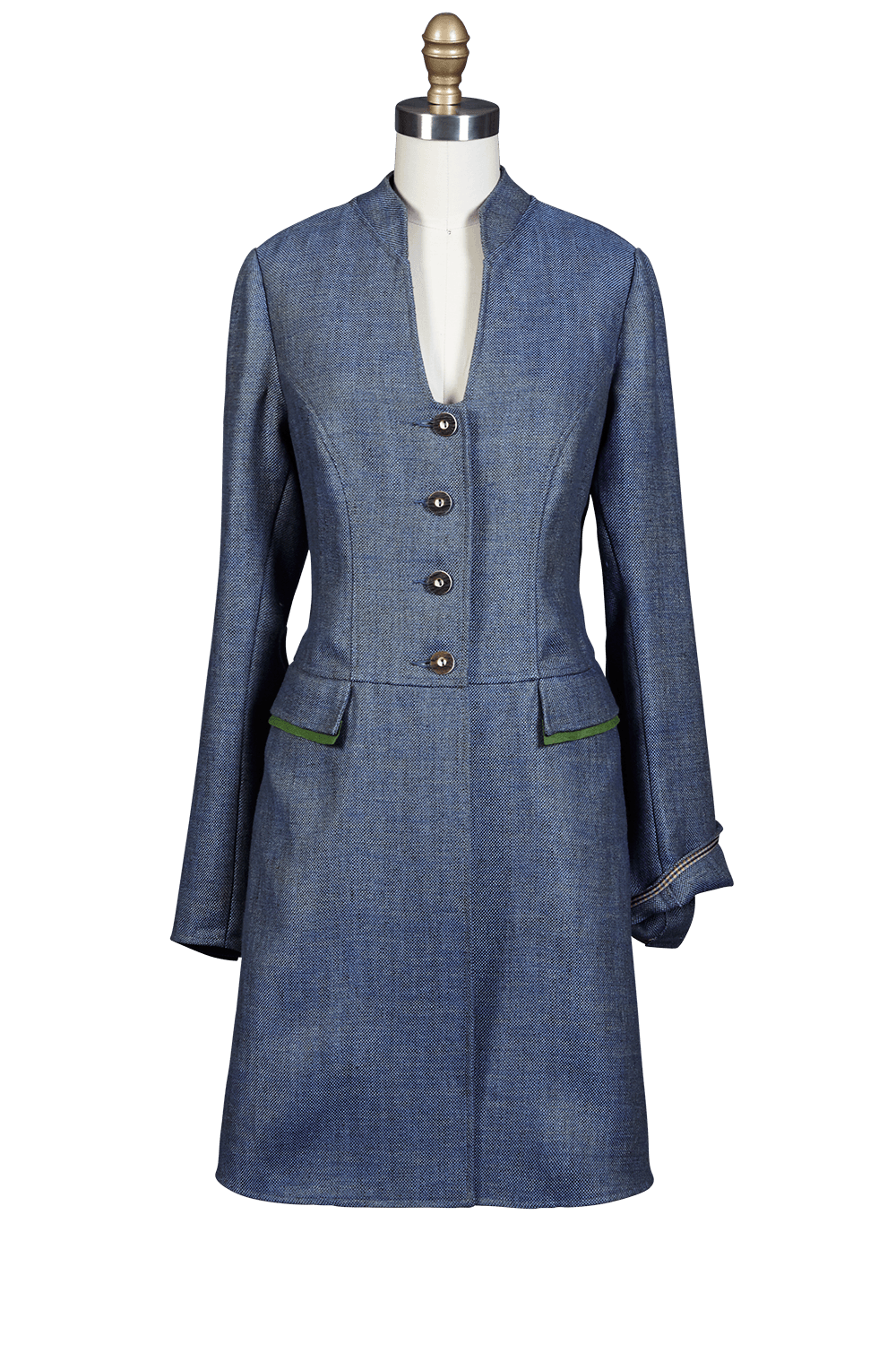 • 3/4 Weekend Stroller in Hunting Linen with wool appliqués and hand welted button holes with horn buttons