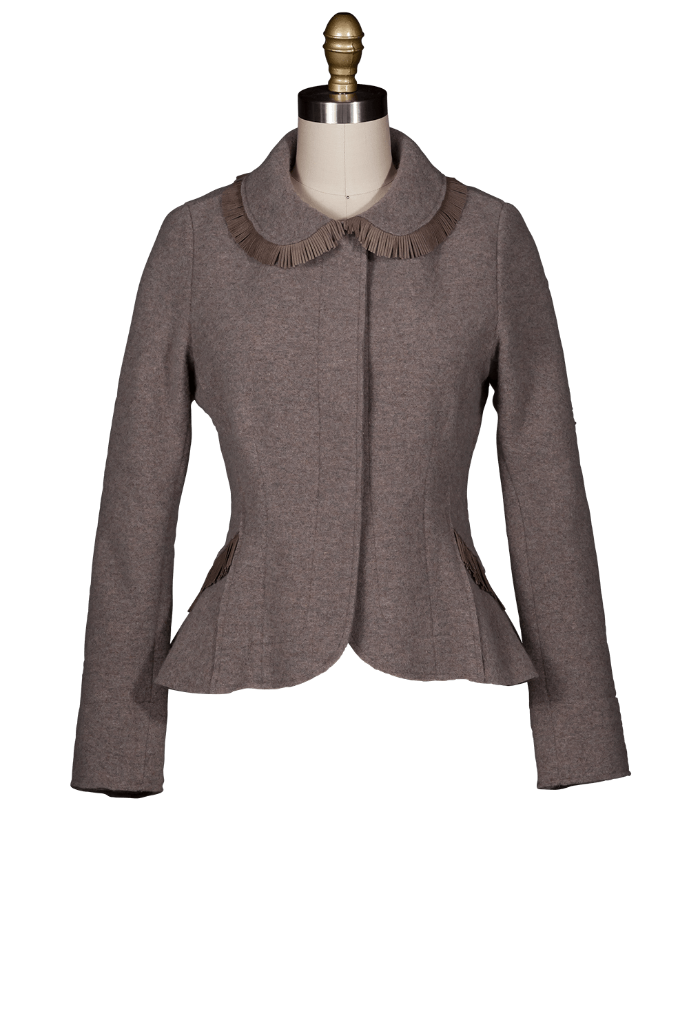 • Walk Cashmere cropped fitted jacket with suede fringe detail on collar and trim