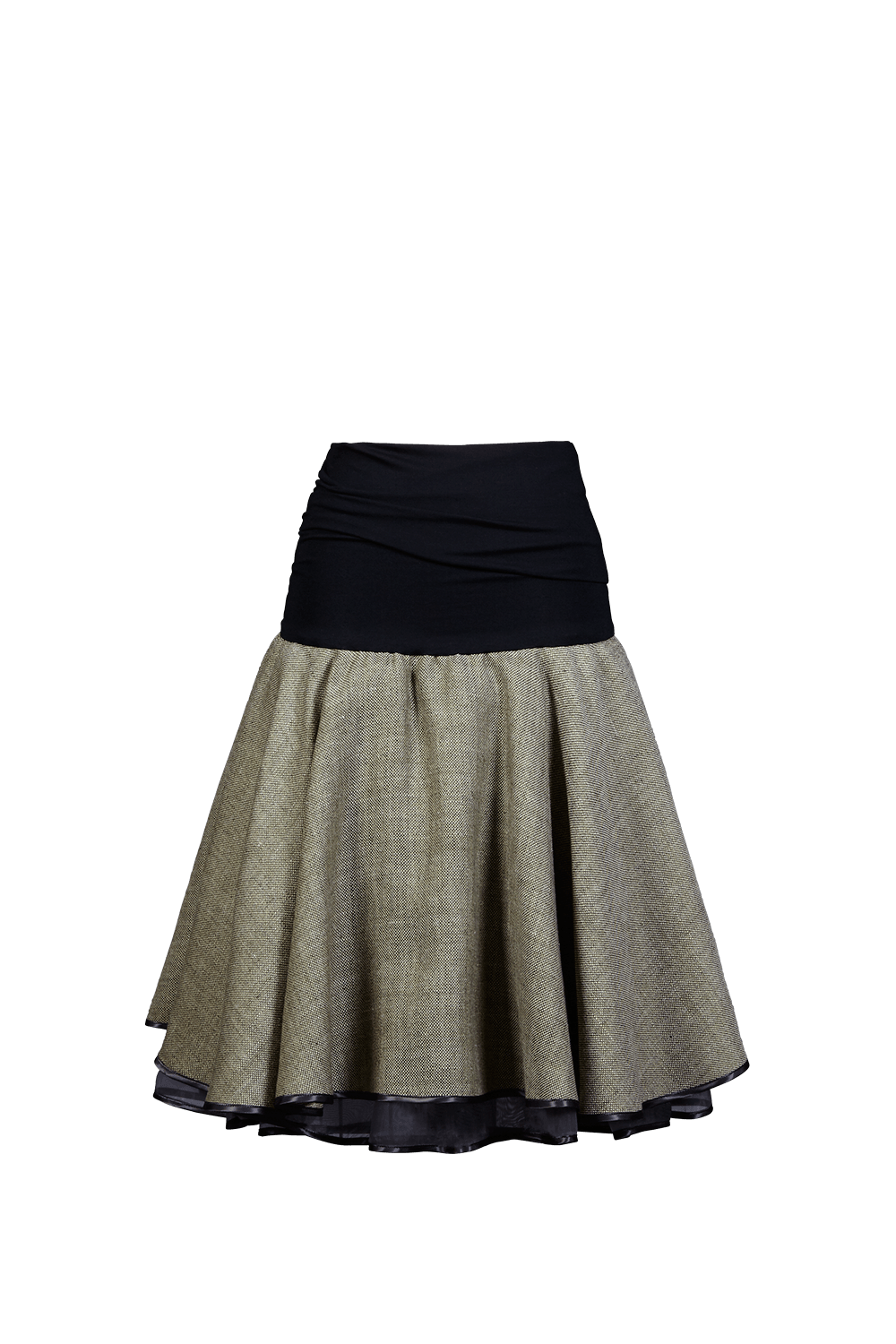 • Skirt with stretch cotton Knit waistband and full linen swing skirt with sheer ruffle slip. Can also be worn as a strapless dress