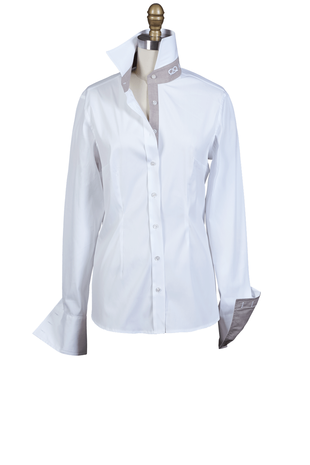 • Prima Cotton tailored shirt with accent color of taupe melange on collar, cuff and button plaque