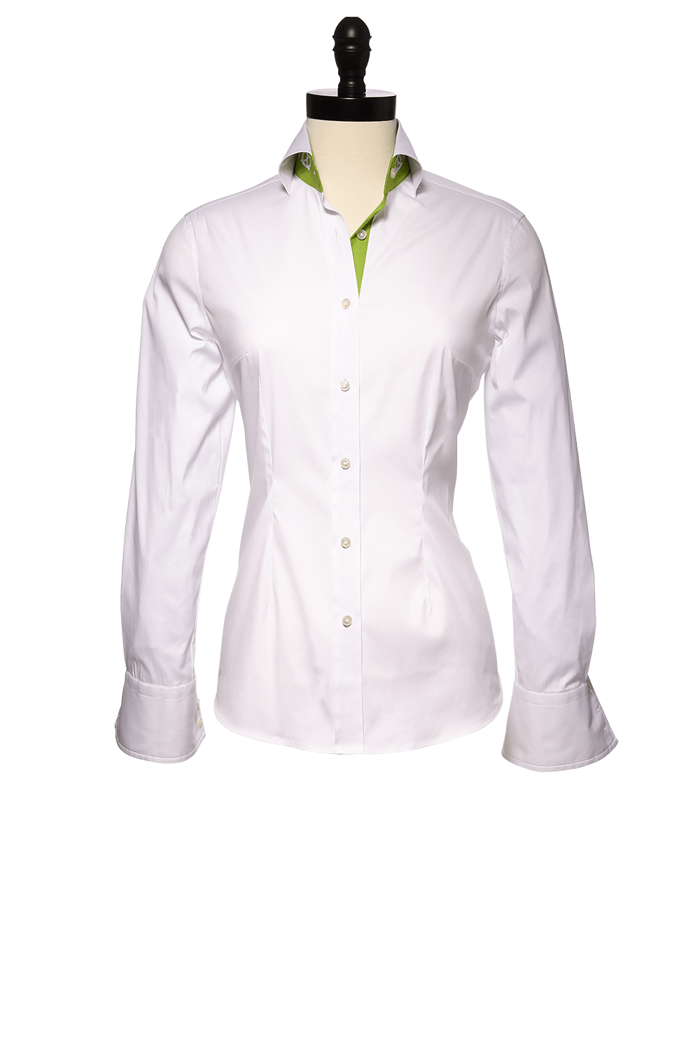 • Prima Cotton tailored shirt with accent color of bright green on collar, cuff and button plaque