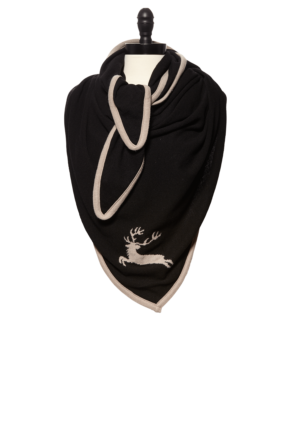 • Merino Knitted Scarf with accented Deer motif and trim
