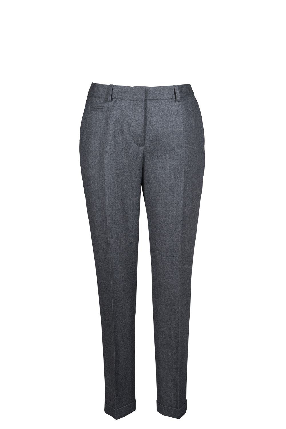 • Slim urban trouser with low rise waist, side and back pockets and tapered leg and 1.25 " cuff