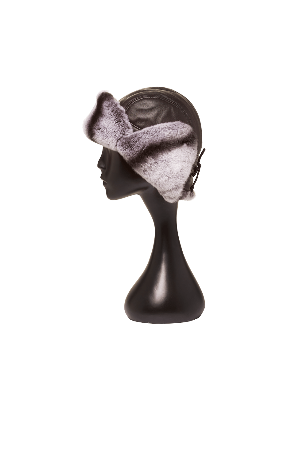 • Fur bomber hat with drawstring detail and snap up ear flaps