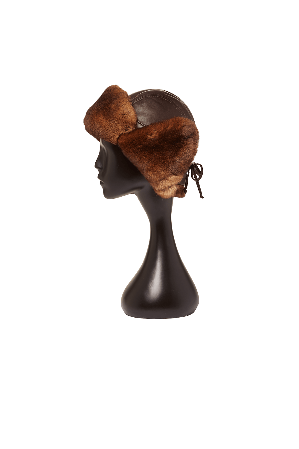 • Fur bomber hat with drawstring detail and snap up ear flaps