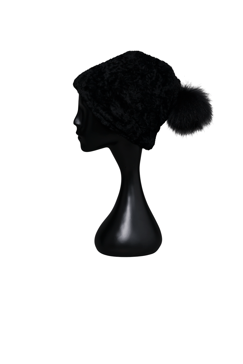 • Wool draw string cap with fur pompom