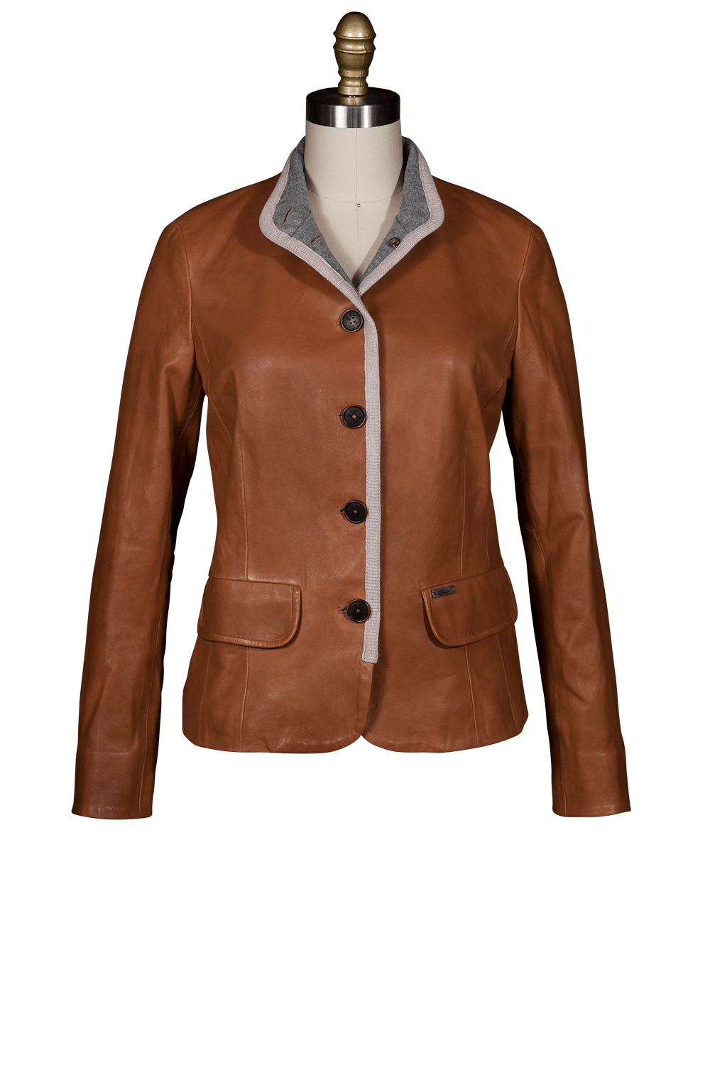 • Vintage style fitted cropped jacket. Made with distressed leather and lined in wool and cotton