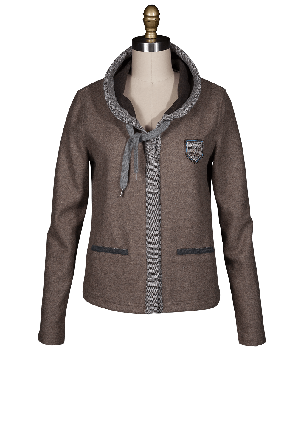 - Easy Unlined Loden Wool Jacket with cotton knit jersey accents and trim