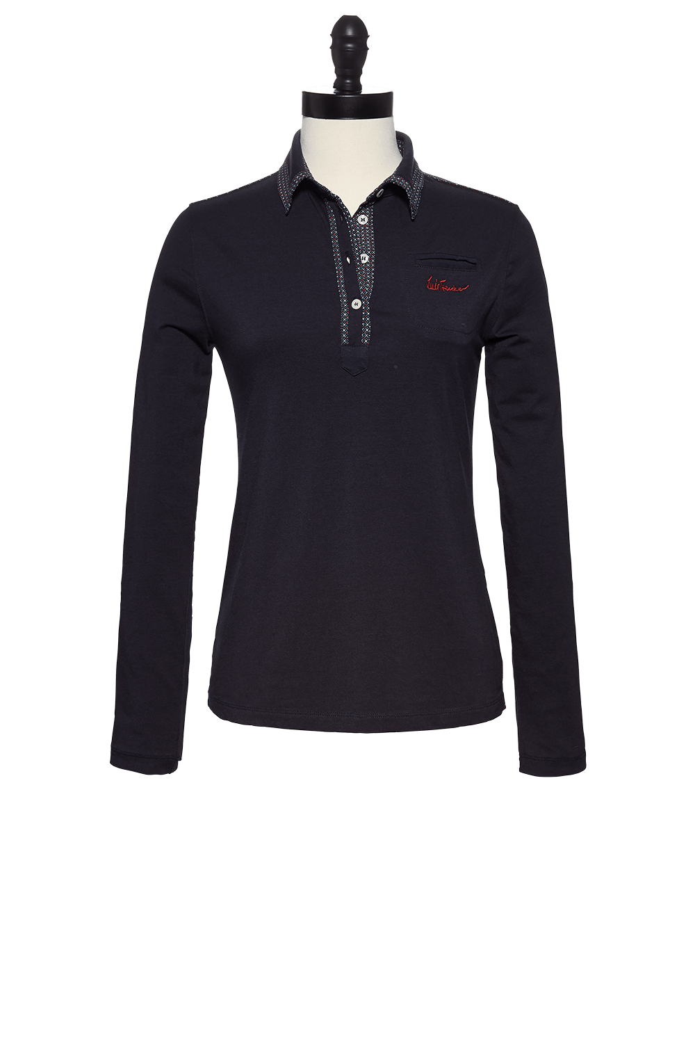 - L/S Polo shirt with seam details with print fabric accents