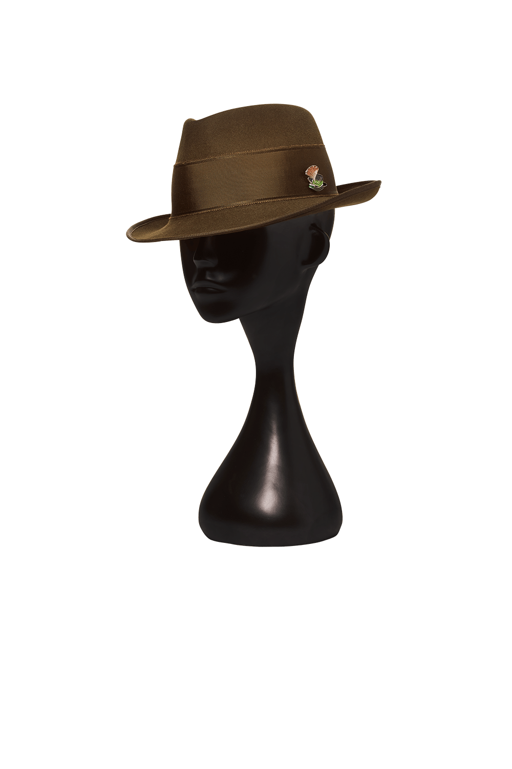 • Vintage classic brim fitted top w/ wide Dk. Brown classic band and trim