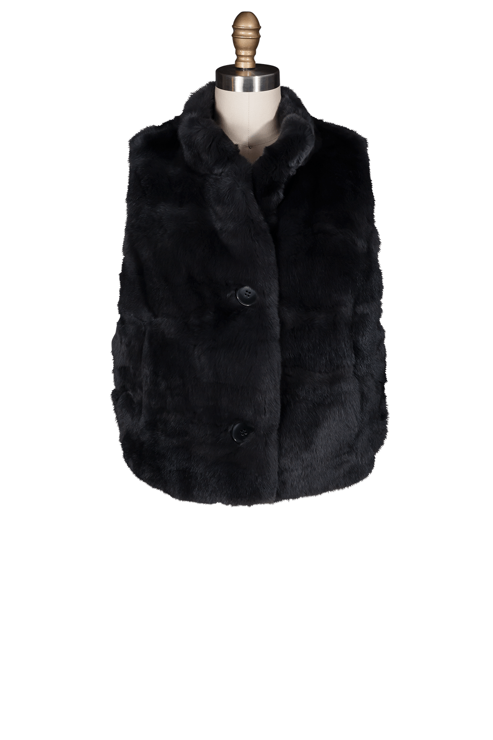 - Rex fur vest with deep arm holes and cropped length. Perfect over a big cable sweater or puffer jacket.