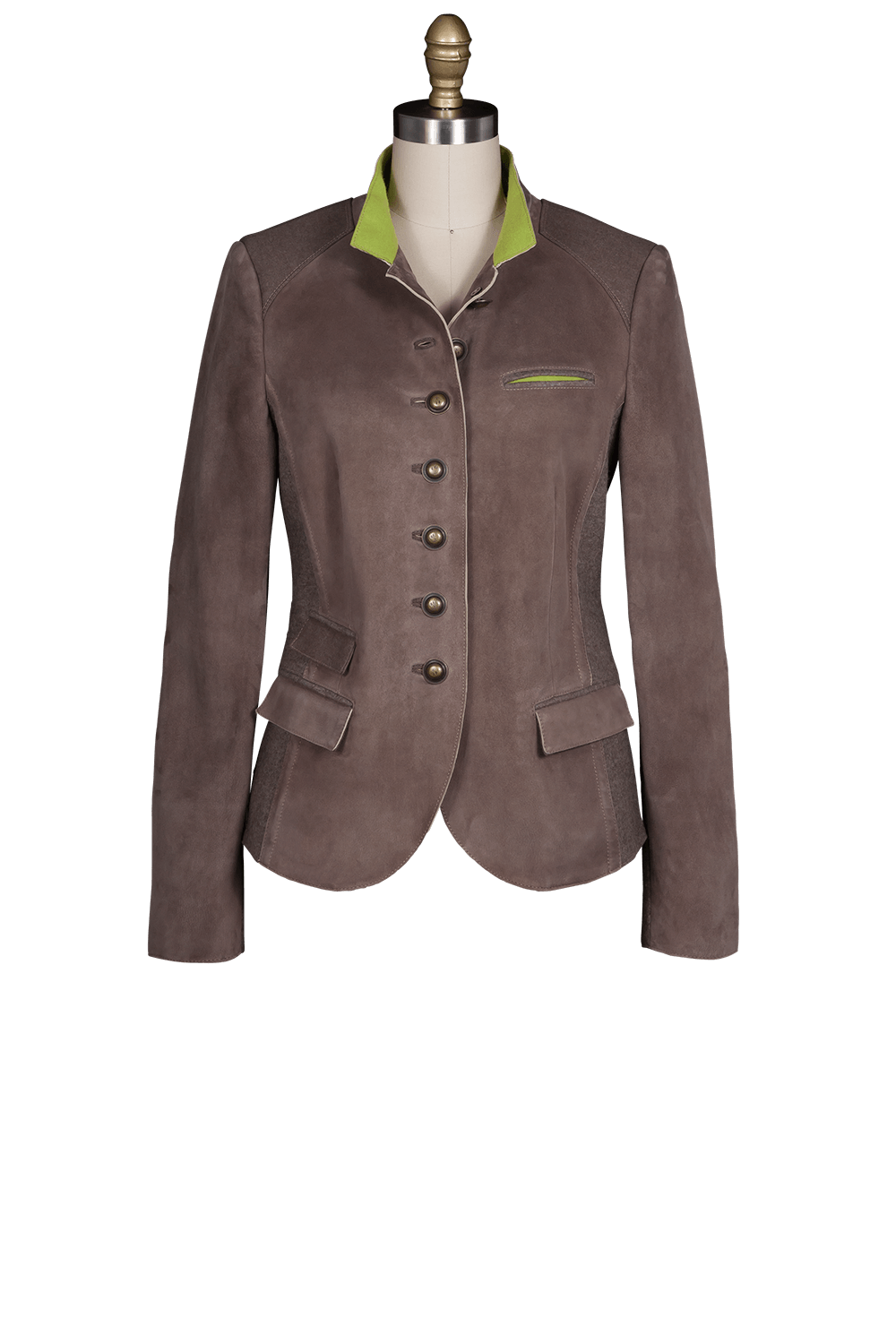 - Loden and leather Jacket with handmade welted button holes and accent loden lining