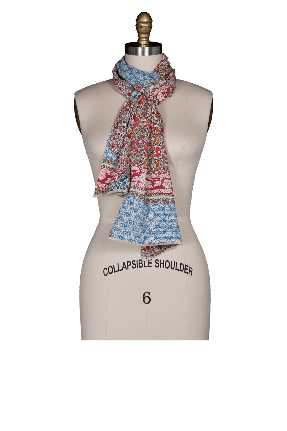 - Long rectangular Scarf with washed fringe. Detailed in exclusive Marrakesh Paisley print.