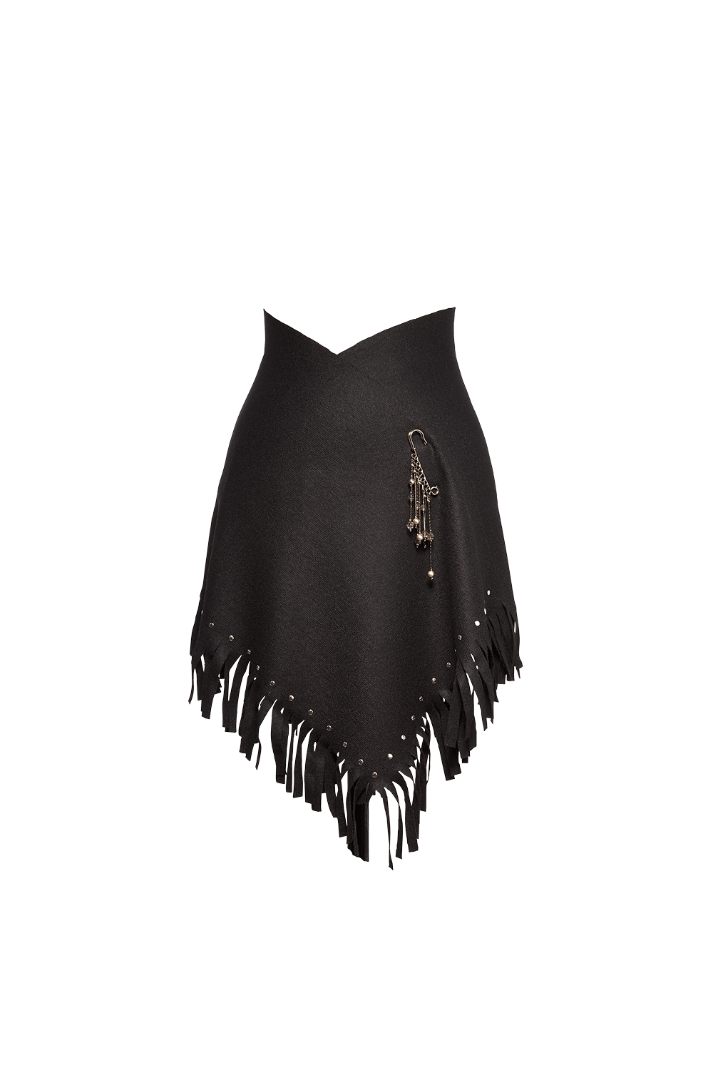 - Wrap scarf with self fringe and silver stud trim