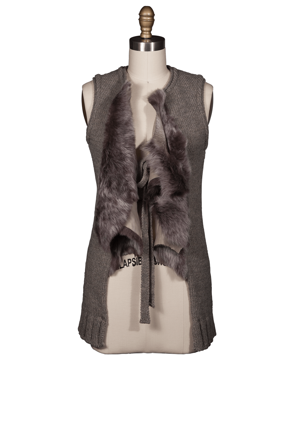 - Long knitted vest with cascade shearling front detail