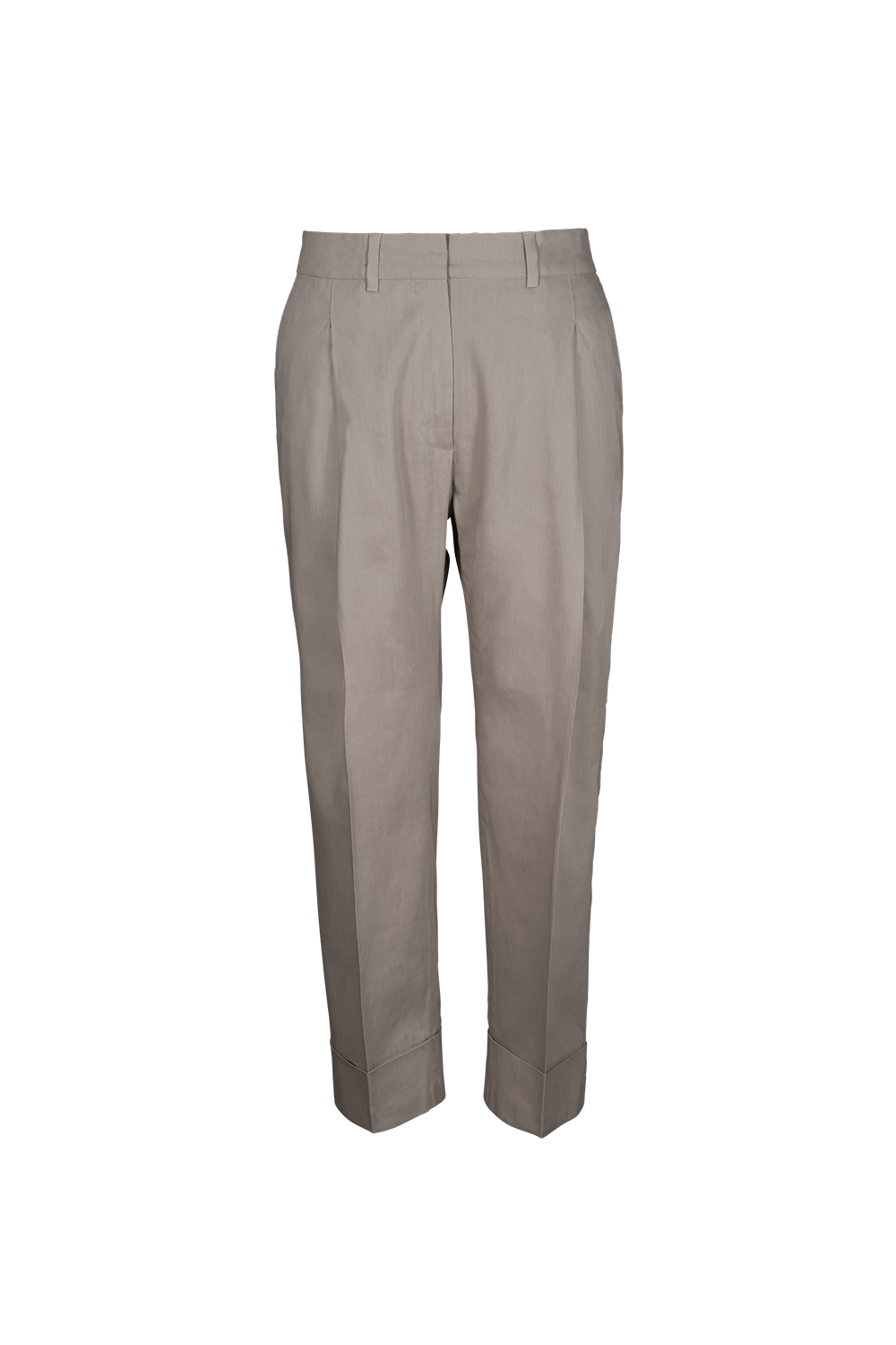 • Wide leg cropped cuff trouser with single pleated front and back pockets