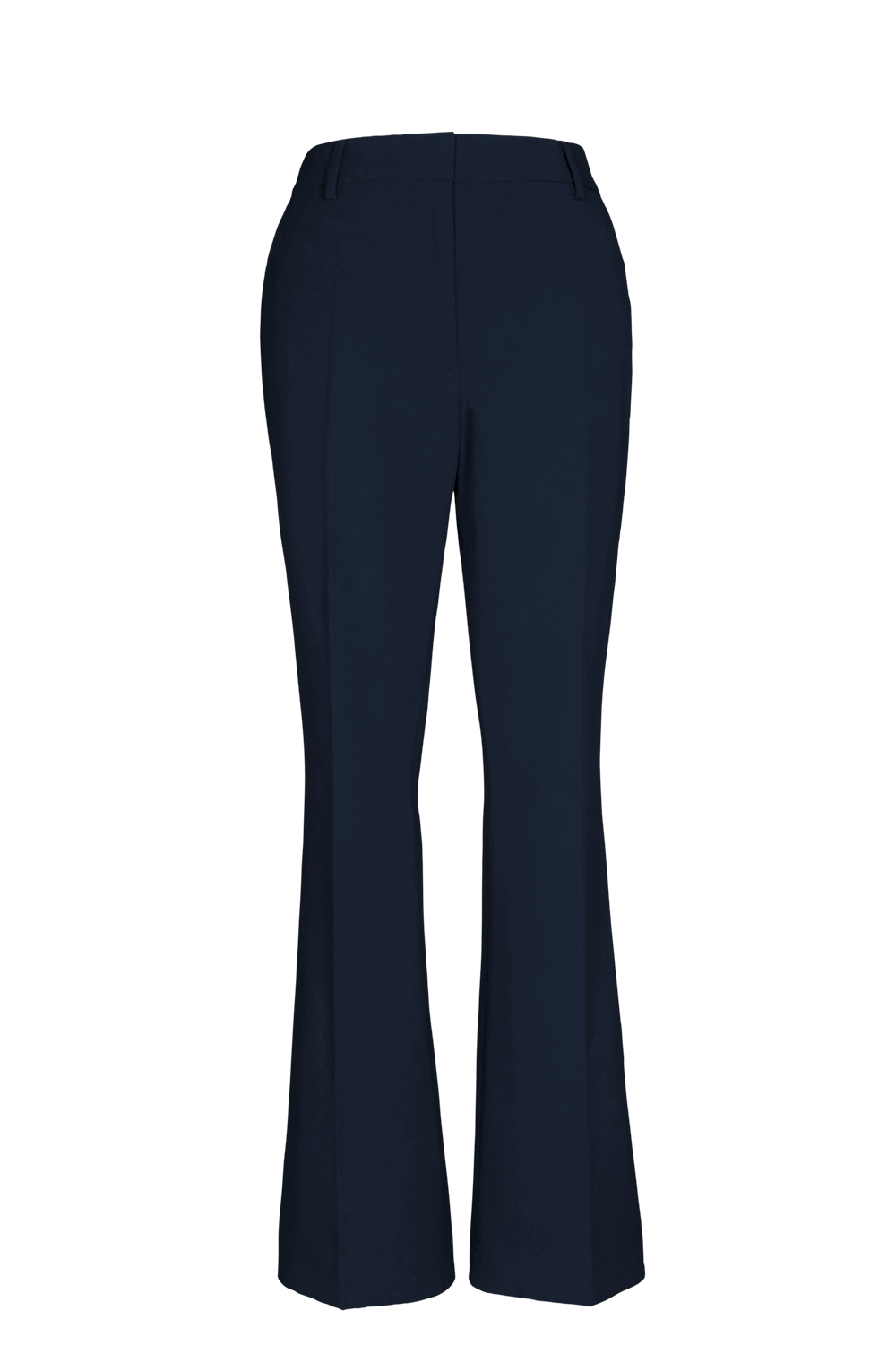 • Mid-rise boot cut trouser tapered to knee and flared leg.