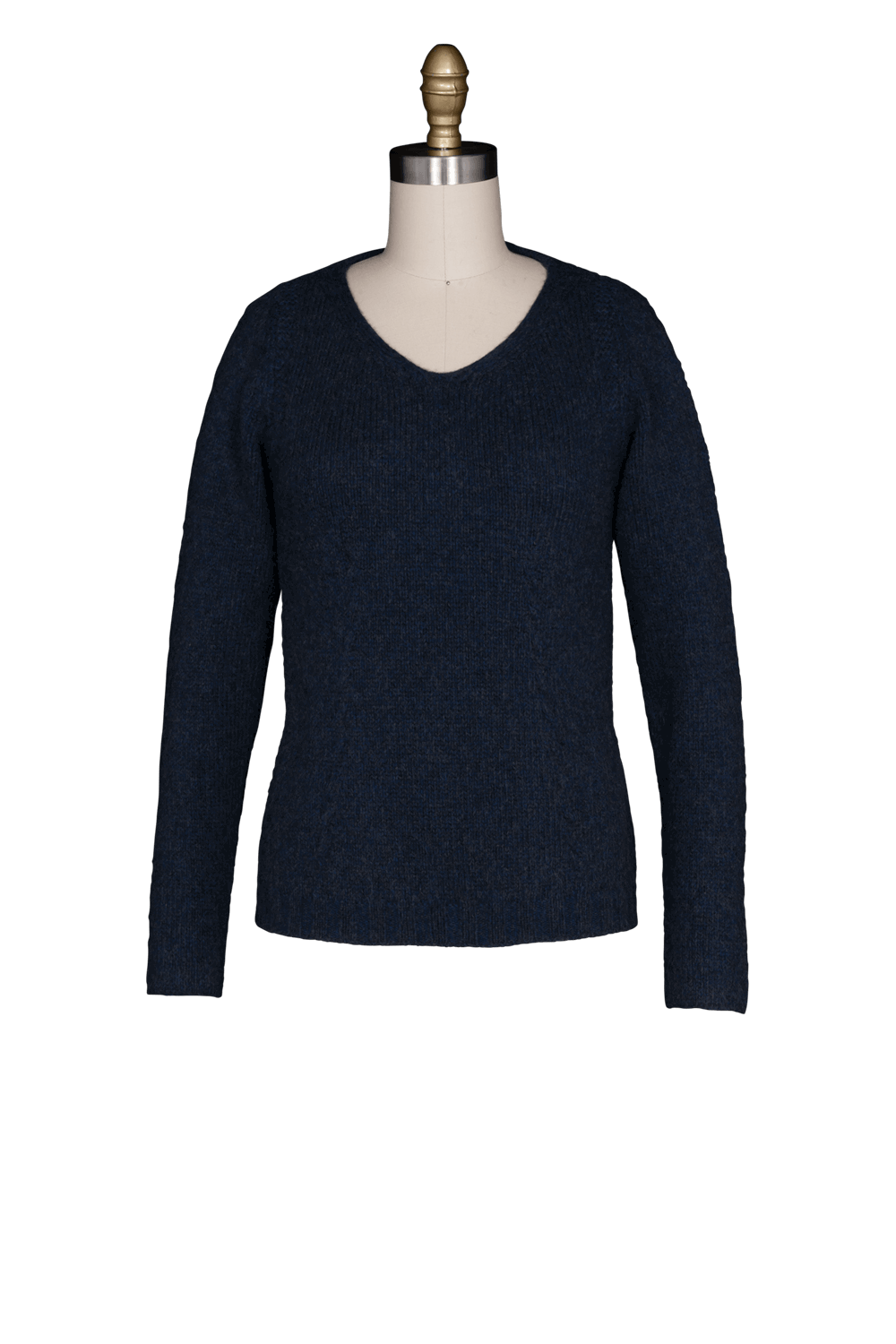 • L/S V neck boyfriend sweater in a cashmere blend. Beautifully detailed with cable stitched seams and slightly fitted body.