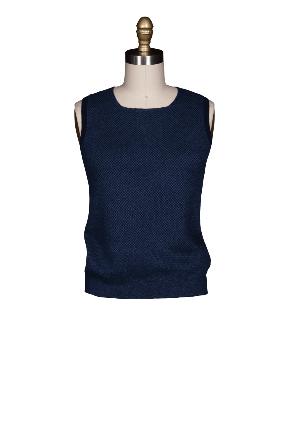 • Classic cropped knit vest. Woven in a micro checkerboard design in merino/cashmere blend yarns. Perfect to layer over a white blouse.