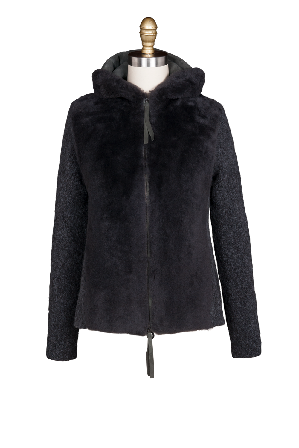 • L/S Zip hoodie with heavy knit body with front and hood detailed in matching shearling