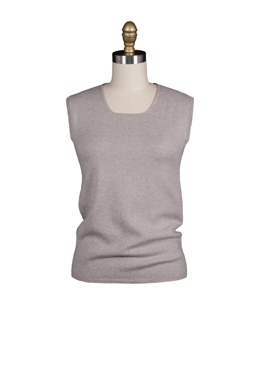 • Sleeveless lightweight shell with rolled neck and stitch details at neck. Loose fitting body and perfect layering under jackets and sweaters.