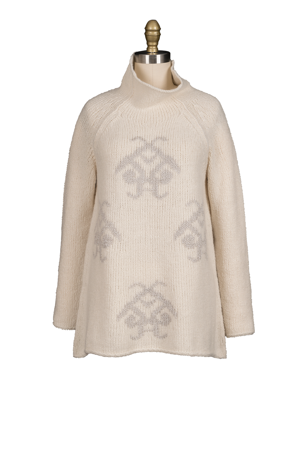 L/S Turtleneck with baby doll hem and detailed hand embroidery designed front.