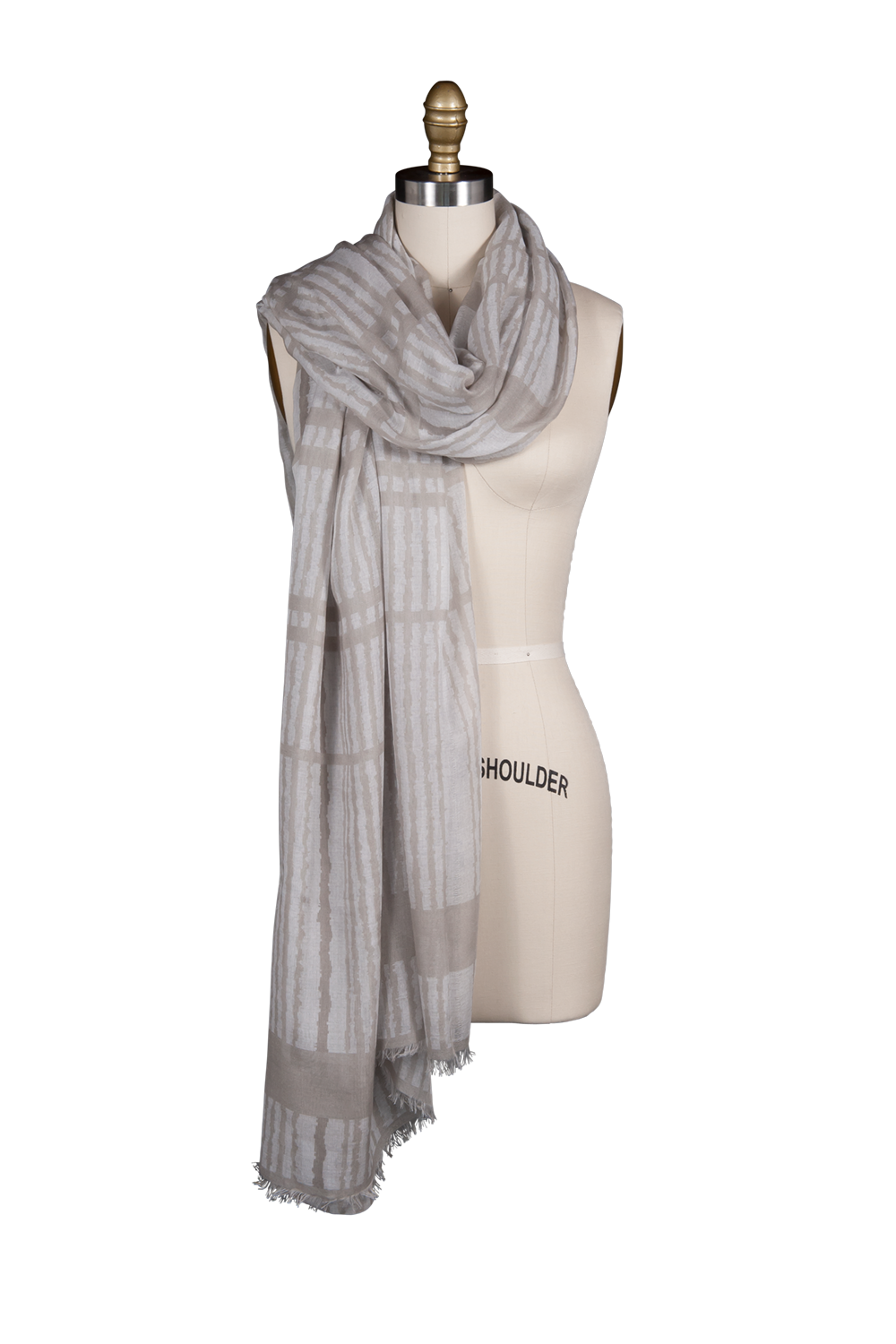 • Large rectangular scarf with fringe edges in a multi-plaid design in Modal and cashmere. Scarf 140 cm X 220 cm